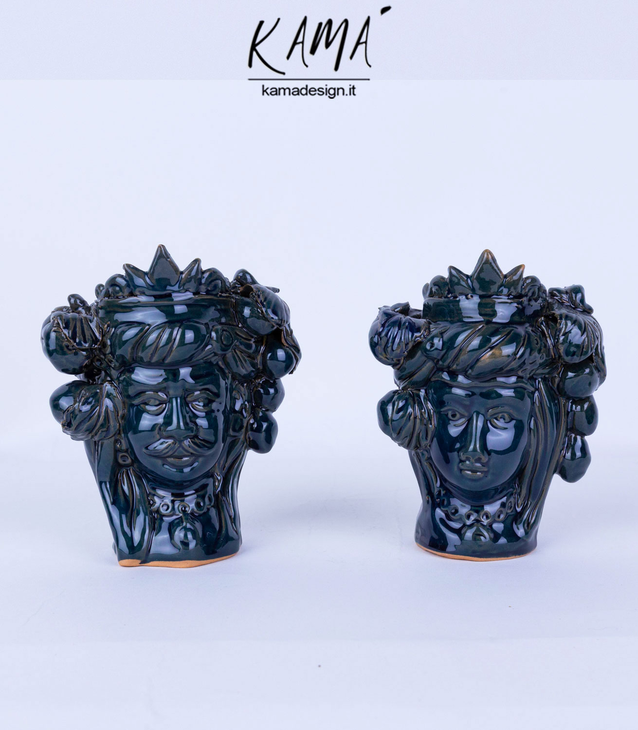 Coppia di teste di Moro H 15 cm – Autentica ceramica di Caltagirone